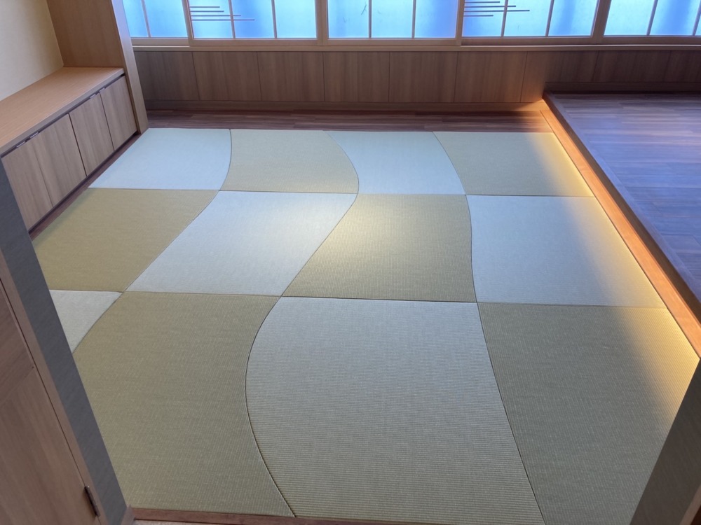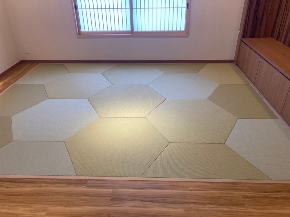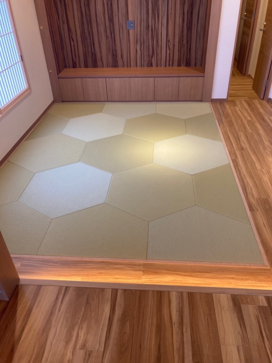 オーダーメイドで六角形・波型の畳を敷き詰めました。